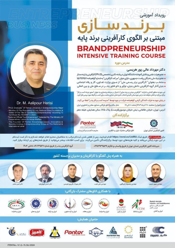برندسازی مبتنی بر الگوی کارآفرینی برندپایه استاد دکتر مهرداد عالی پور هریسی دوره برای اعضای محترم اتاق رایگان است سه شنبه ٢٠ آذر اتاق بازرگانی ایران جهت ثبت نام و دریافت اطلاعات تکمیلی با ما در ارتباط باشید. تلفن 88810525 داخلی 5