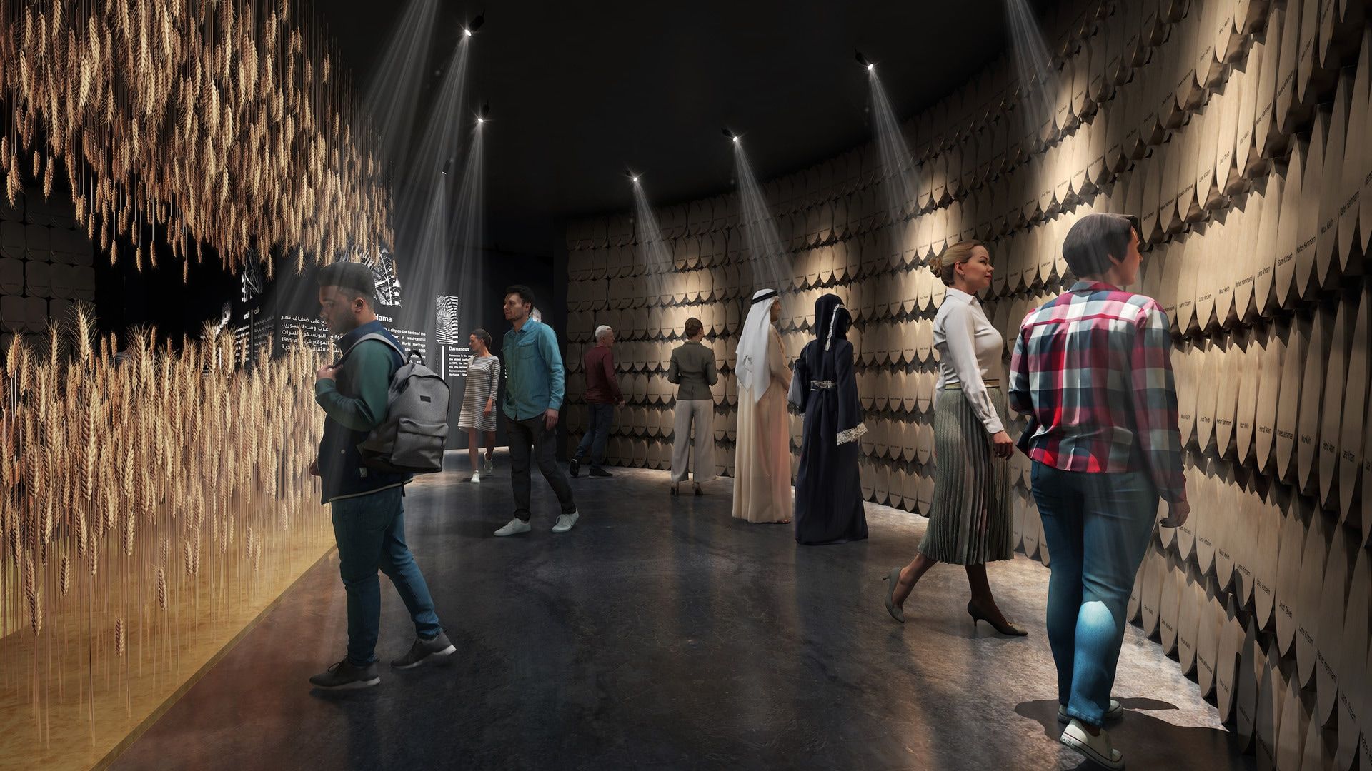 بازدیدکنندگان از غرفه با کلماتی با منشاء عربی که اکنون در دیگر زبانهای آنها در سراسر جهان وجود دارد بیشتر آشنا می شوند و به این نکته کمک می کنند که آنچه ما را متحد می کند از آنچه ما را جدا می کند بیشتر است. همچنین شما با یک تجربه تعاملی سمعی و بصری مواجه خواهید شد که در آن بازدیدکنندگان می توانند در خواندن و نواختن قدیمی ترین نماد موسیقی بشر، که بیش از 3500 سال پیش در اوگاریت نوشته شده است ، شرکت کنید. هدف این تجربه صحبت با بازدیدکنندگان به زبان جهانی موسیقی است.