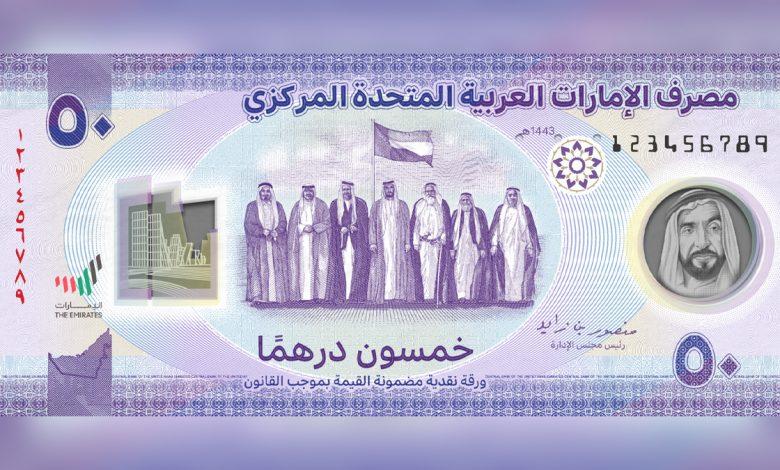 بانک مرکزی امارات متحده عربی اعلام کرد که اسکناس 50 درهم ساخته شده از پلیمر یک پول جدید و رسمی در کنار اسکناسی که هم اکنون در گردش است، می باشد.